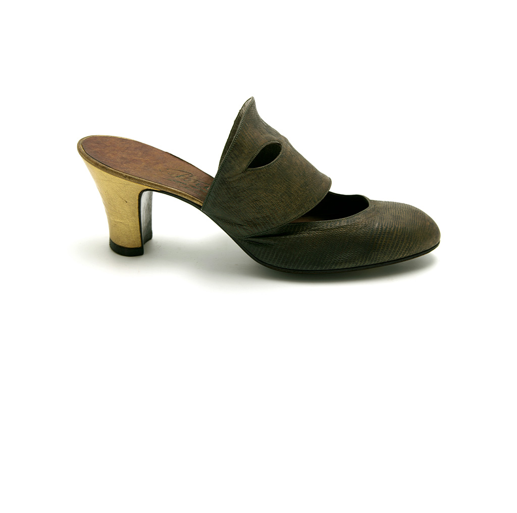 Spanish designer Manolo Blahnik (1942 - ) has been dedicated to the art of shoemaking since the 1970s. His work is often inspired by the elegance of the past which he translates into objects of desire for the present. This pair of Locka’s was gifted to the museum by Mr. Blahnik in 2014. It remains one of his favourite shoes of that season.